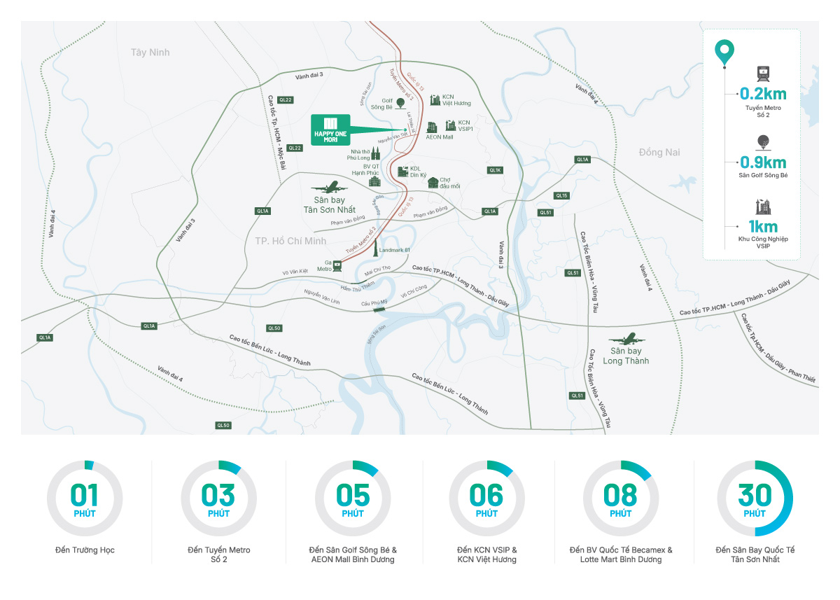 ✨ Tiềm năng đầu tư vượt trội: Cách các khu – cụm công nghiệp trọng điểm như VSIP 1, Sóng Thần, Linh Trung, Tân Đông Hiệp… chỉ 5-10 phút di chuyển, Happy One Mori trở thành lựa chọn lý tưởng cho các chuyên gia và kỹ sư làm việc tại đây. Điều này mở ra cơ hội đầu tư cho thuê hấp dẫn với nguồn cầu lớn và ổn định.